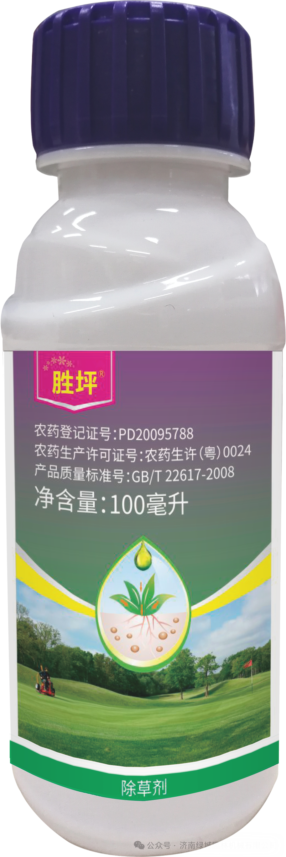 3、胜坪:冷季型草坪中防除禾本科杂草,使用温度以20-25°C为宜。一般在4月份禾本科杂草萌芽后2-4叶期效果最佳。