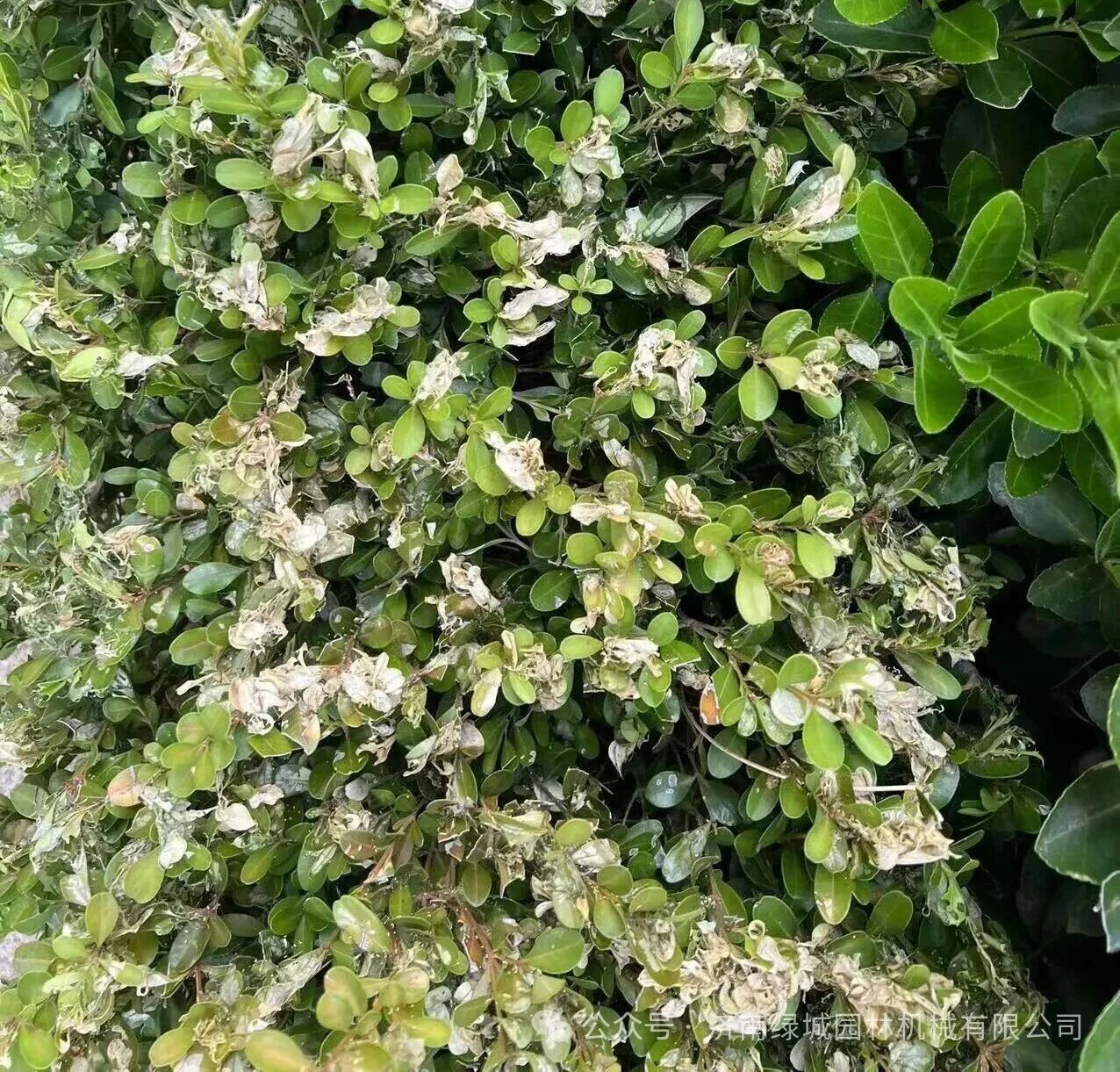 主要有大叶黄杨白粉病、山楂锈病、海棠锈病、草坪锈病等等。白粉病和锈病容易判断,发病初期使用光合素+理白,防治不住的话可采用光合素+八方叶琦、叶达芬等喷雾,间隔5-7天,连续2次。
